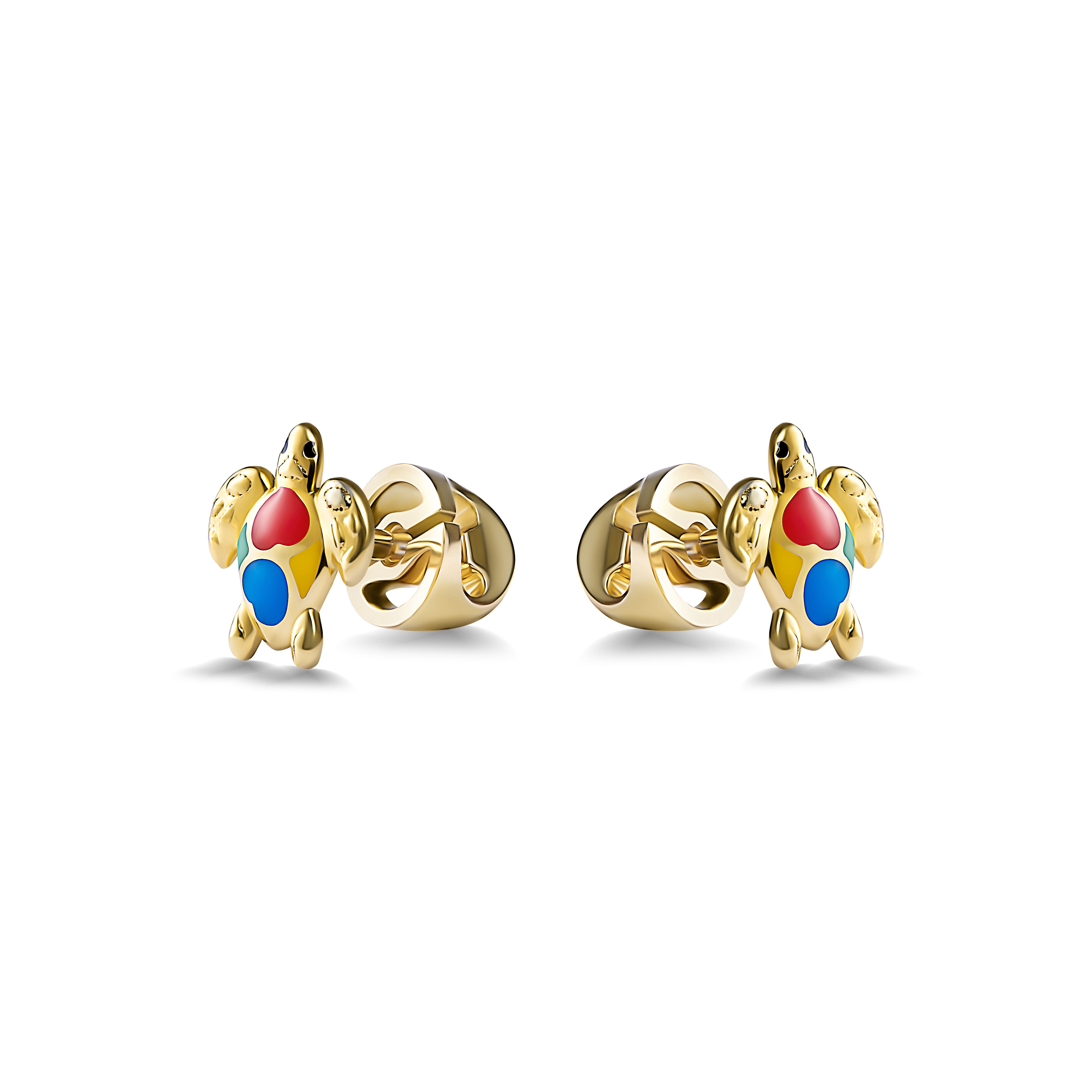 Золотое детское украшение с черепашками ассоциируется с добротой, спокойствием и маленькими морскими приключениями. Это теплое и вдохновляющее украшение для ребенка, которое легко становится любимым Золото 585, 1,4гр., эмаль