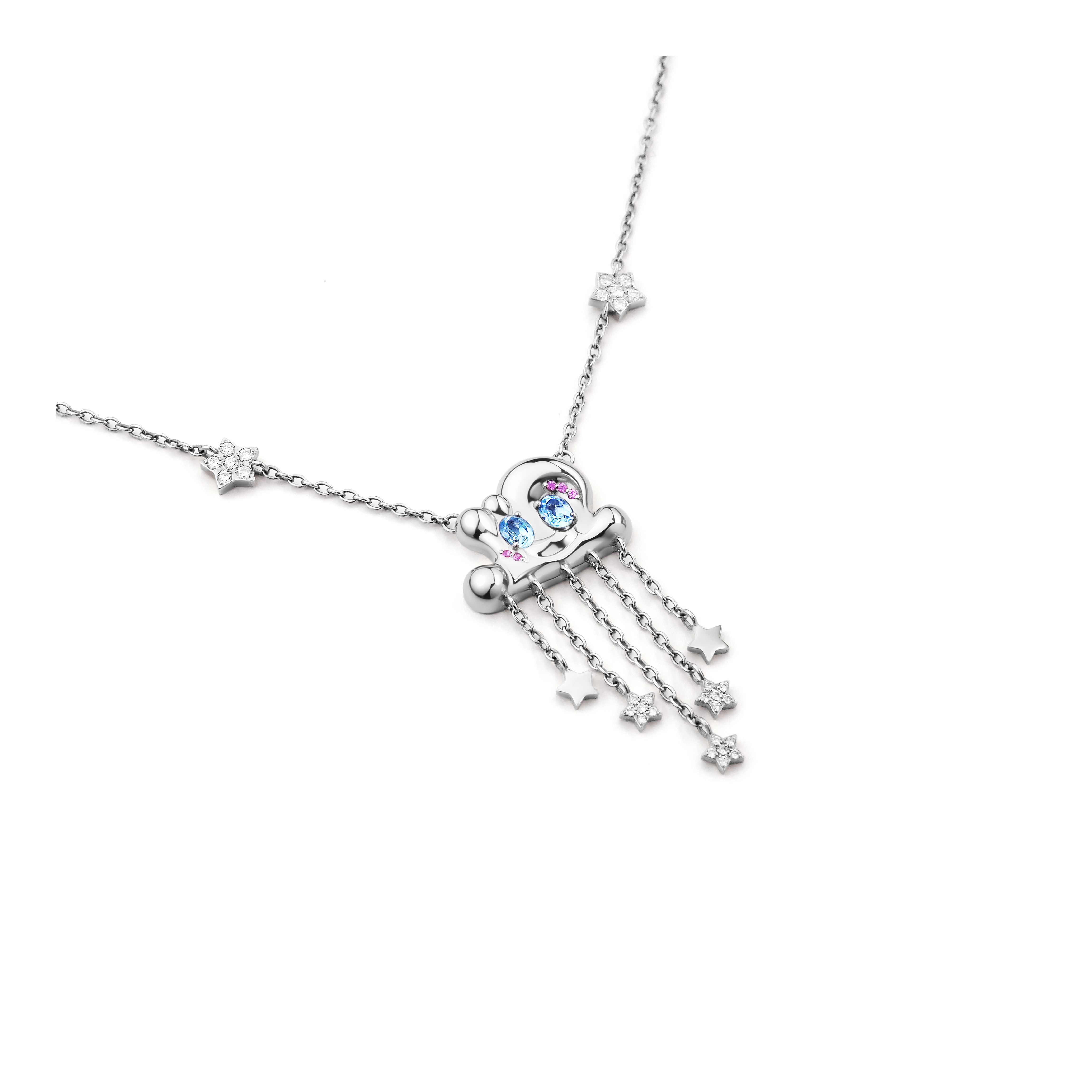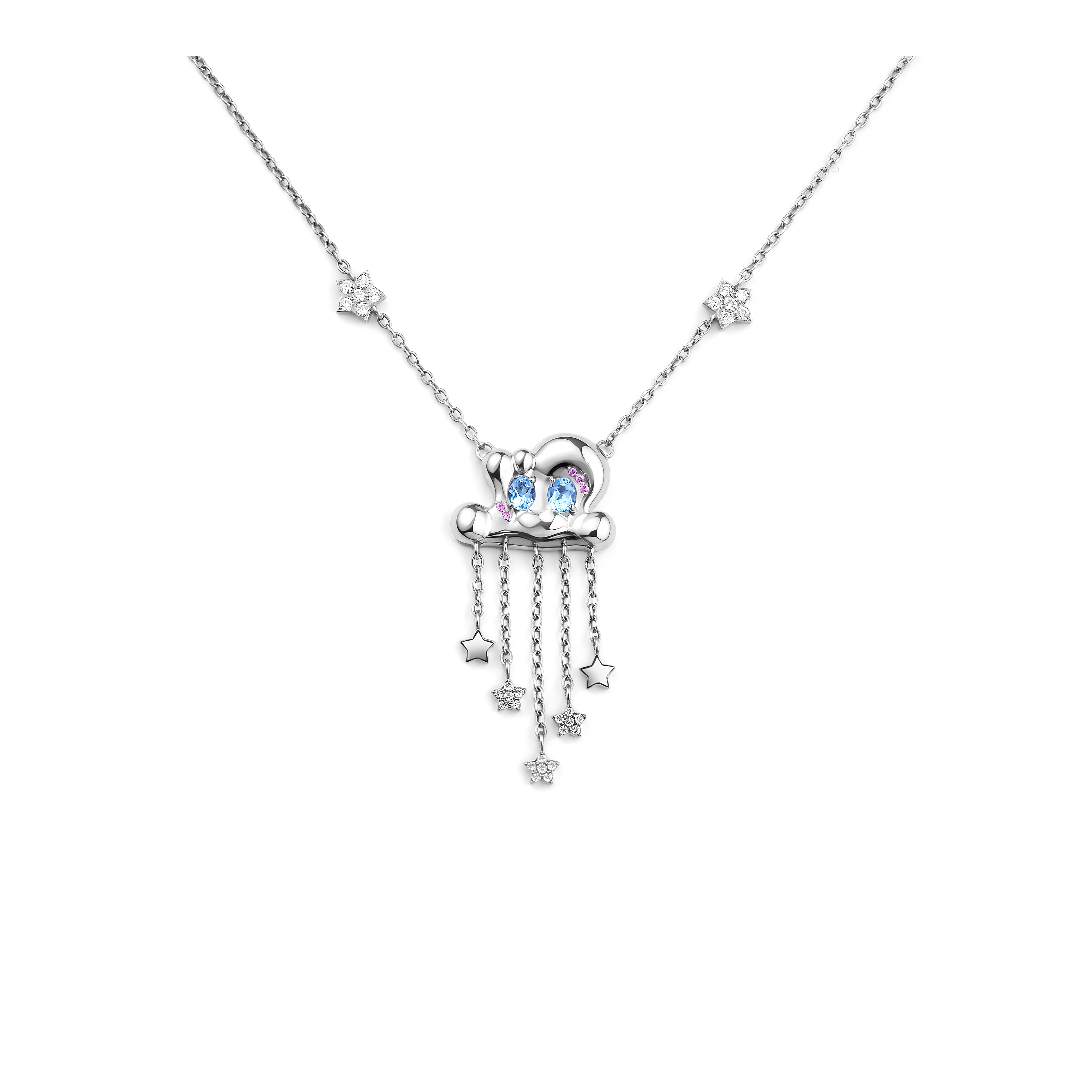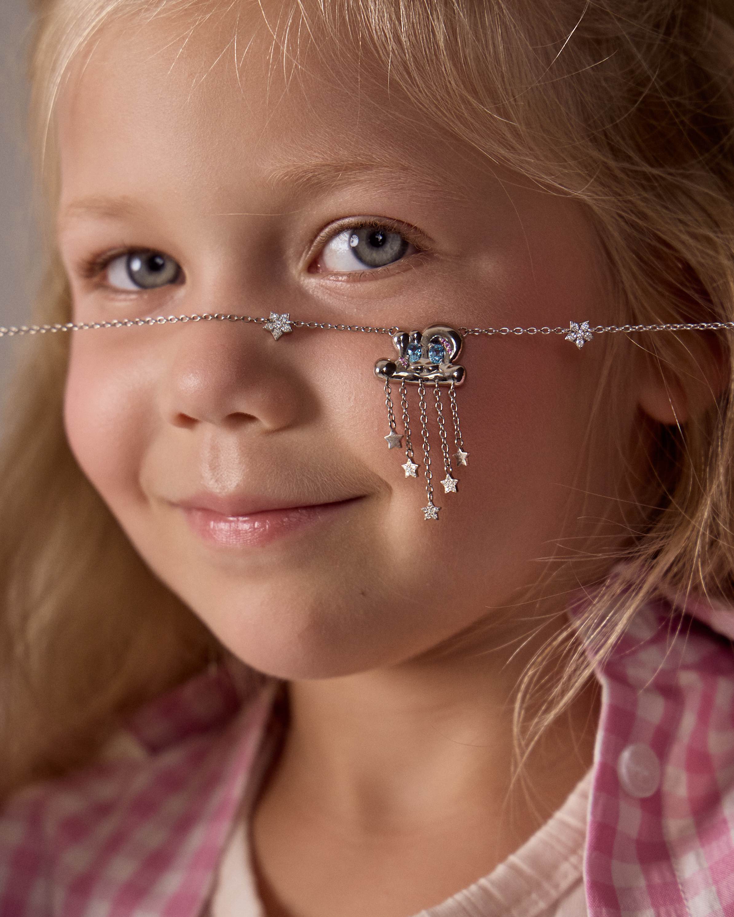 Серебряная подвеска-облако словно хранит в себе мягкость, свет и спокойствие. Такой подарок ребенку станет красивым символом мечтательности, нежности и теплой заботы. Серебро 925, 4,5гр + якорная цепь 50см, розовые сапфиры 0,03Ct, топазы 0,42Ct, лабораторные бриллианты 0,67Ct