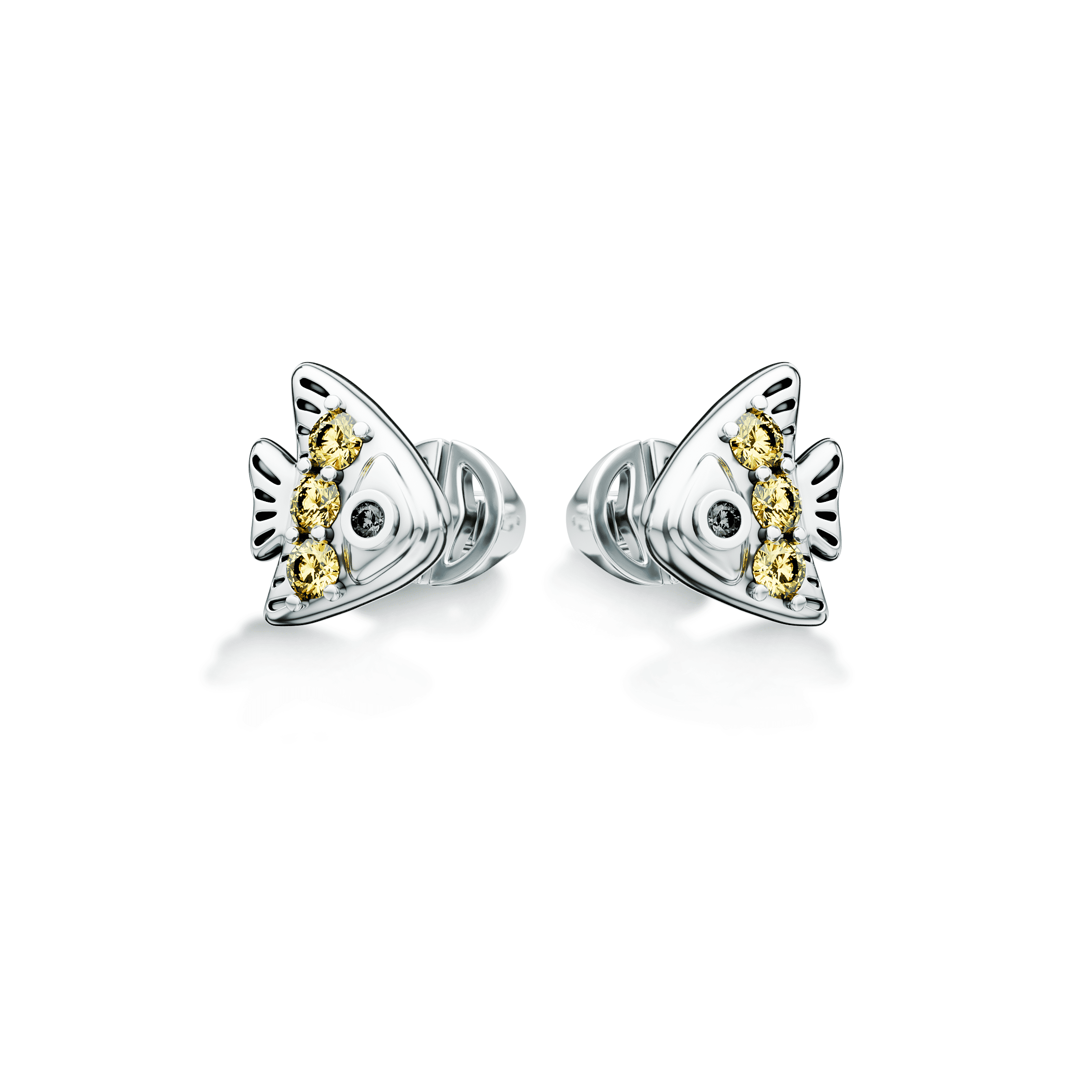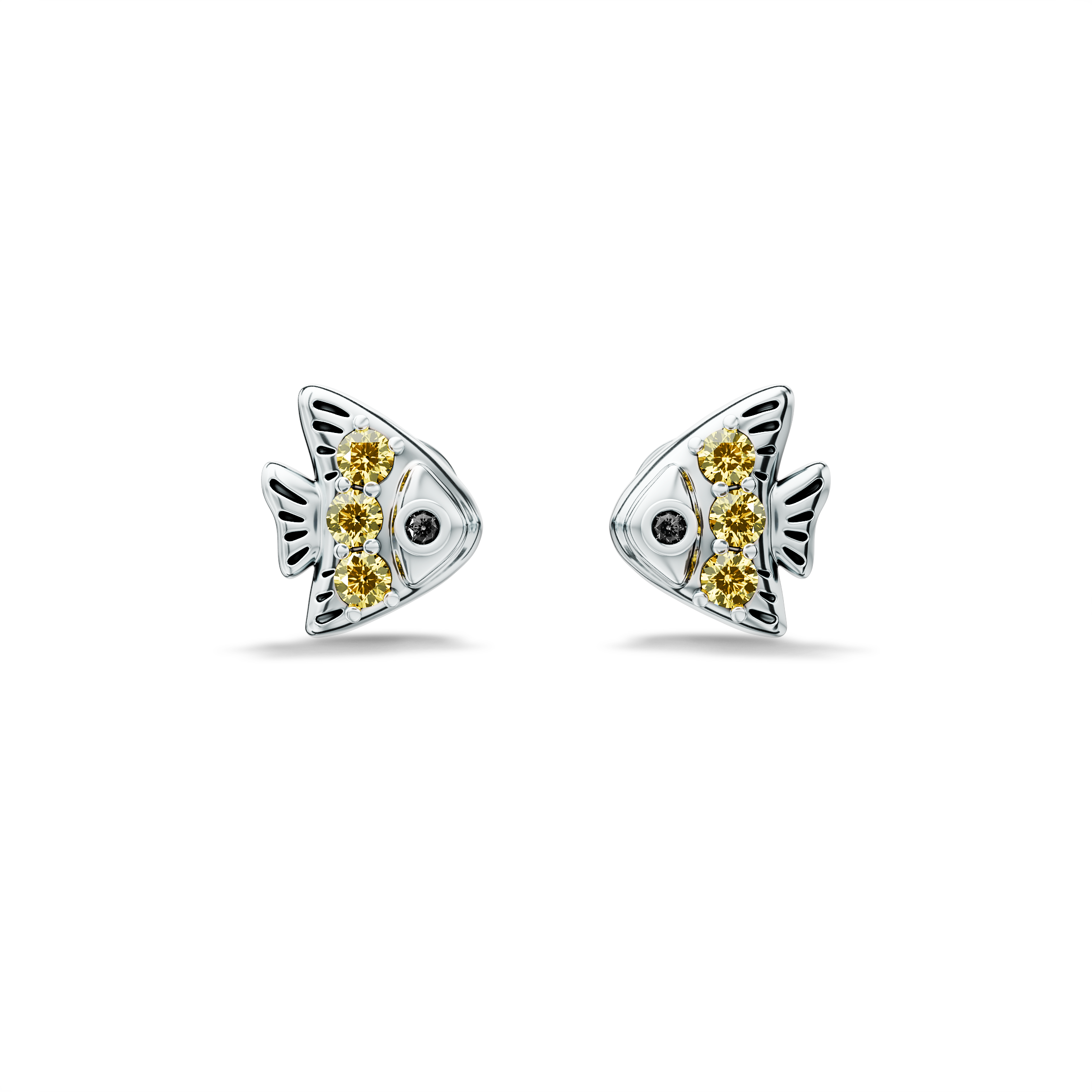 Золотое украшение с желтой морской рыбкой выглядит ярко, радостно и очень тепло. Такой подарок ребенку станет маленьким драгоценным символом лета, игры и детского счастья Золото 585, 2,8 гр. бриллианты 0,21Ct